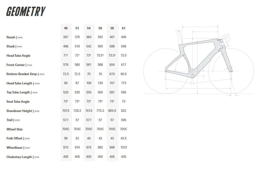 | Sizes | 48cm, 51cm, 54cm, 56cm, 58cm, 61cm |
