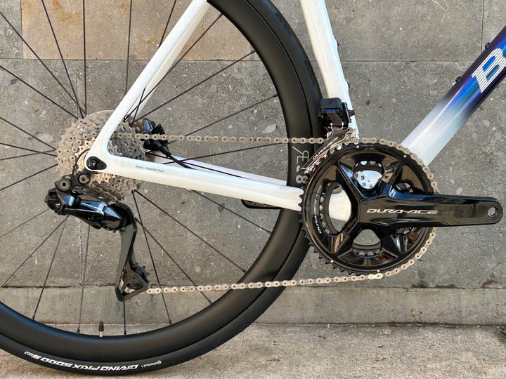 Equipped with Shimano's flagship Dura-Ace Di2 groupset, the Diamante offers seamless electronic shifting, ensuring precise and reliable gear changes in any riding condition. The RE38 carbon wheels provide a lightweight yet robust platform, enhancing speed and responsiveness on climbs and descents alike.