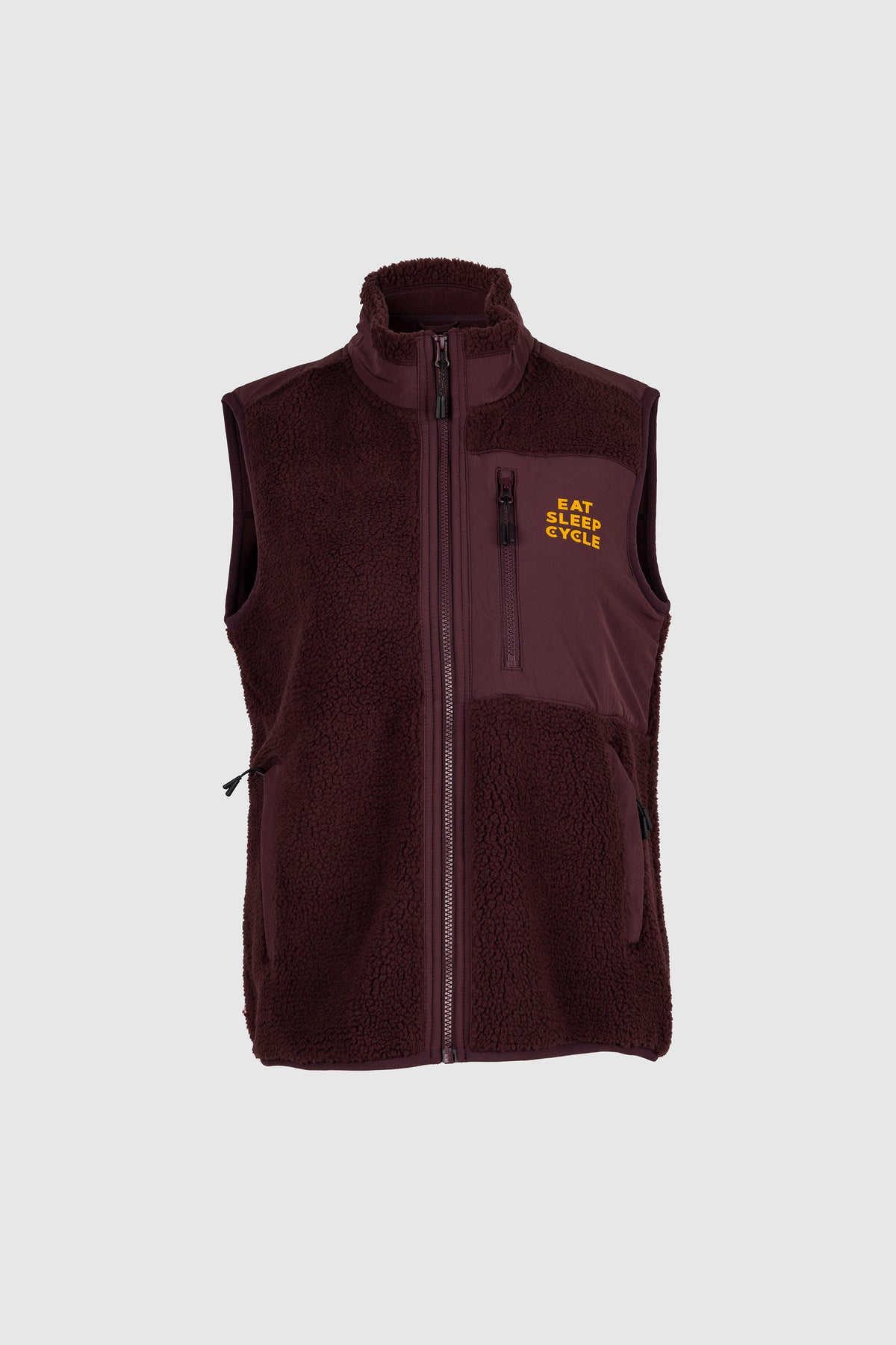 Elevate your off-bike wardrobe with a piece that speaks to your love for cycling and commitment to sustainable fashion. Add the Eat Sleep Cycle Unisex Fleece Vest - Red/Brown to your collection today and experience the perfect fusion of comfort and cycling culture.