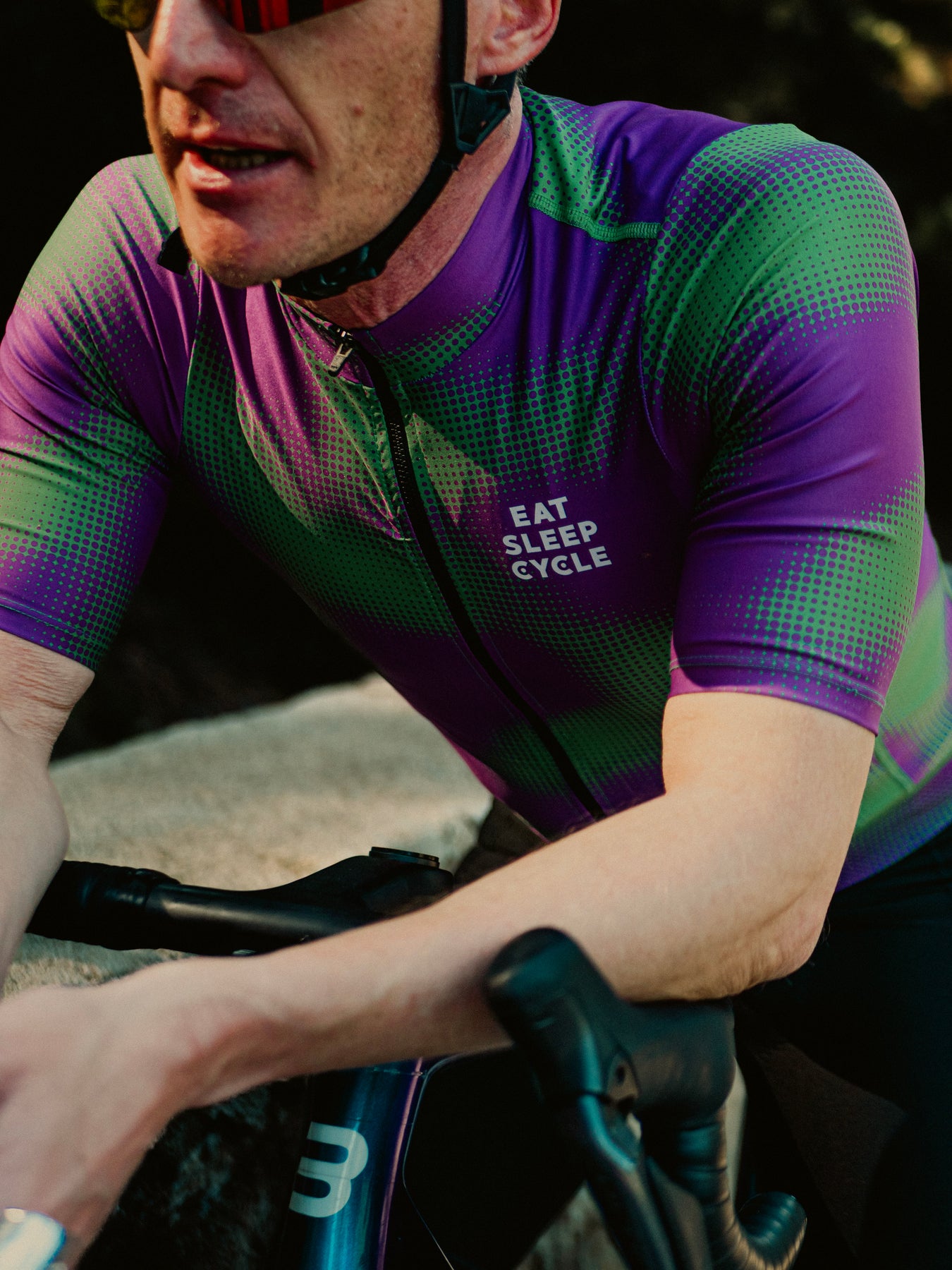The redesign of a classic jersey paying homage to the Málaga flag. Eat Sleep Cycle is now well and truly a local in this wonderful city and proud to wear the Málaga colours.
